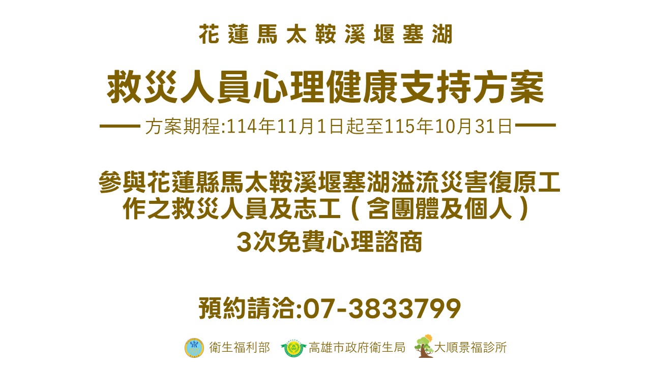本院提供馬太鞍溪堰塞湖救災人員心理健康支持方案!